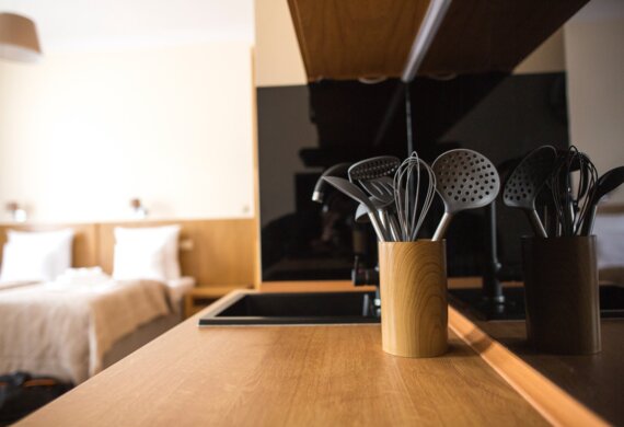 Nowoczesny design, wysokiej jakości materiały oraz bogate wyposażenie zadowolą Gości, którzy poszukują połączenia nowoczesnej aranżacji wnętrz z wyjątkową atmosferą. Wszystkie apartamenty wyposażone są w aneksy kuchenne pozwalające na przygotowanie posiłków we własnym zakresie.